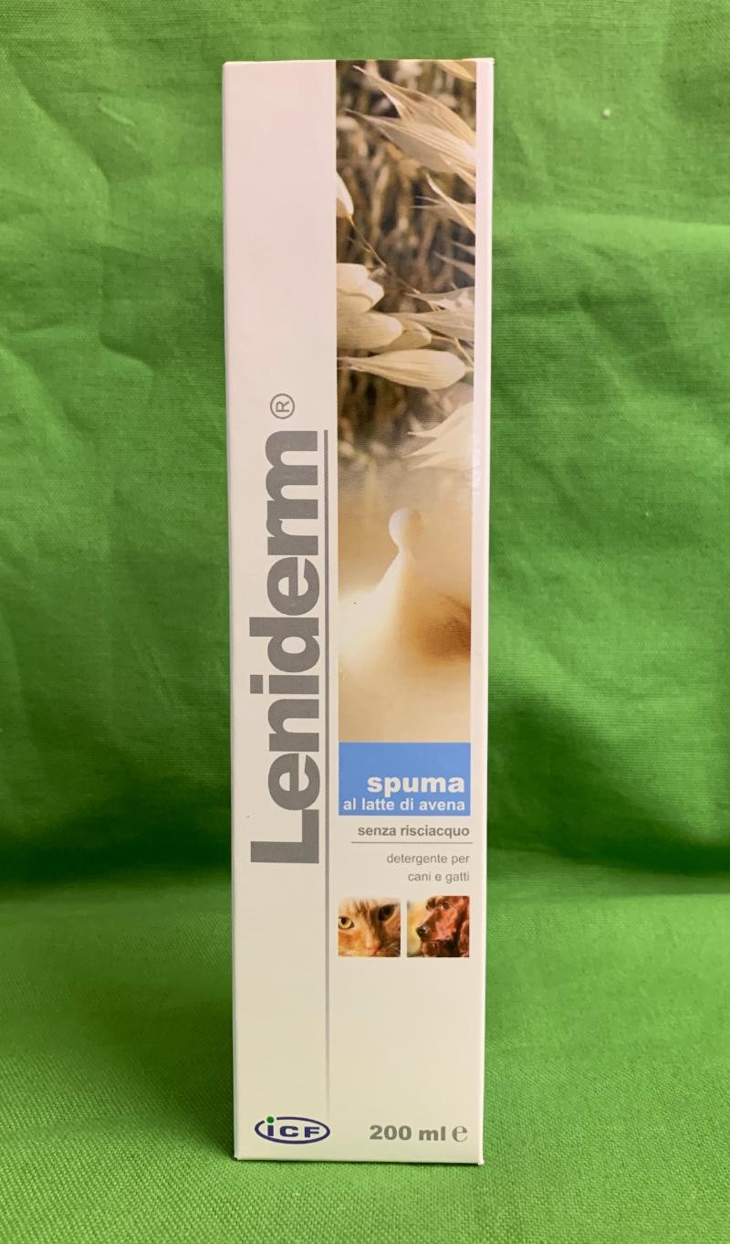 Leniderm spuma al latte di avena lava e rinfresca velocemente ed efficacemente senpa impiego di acqua.