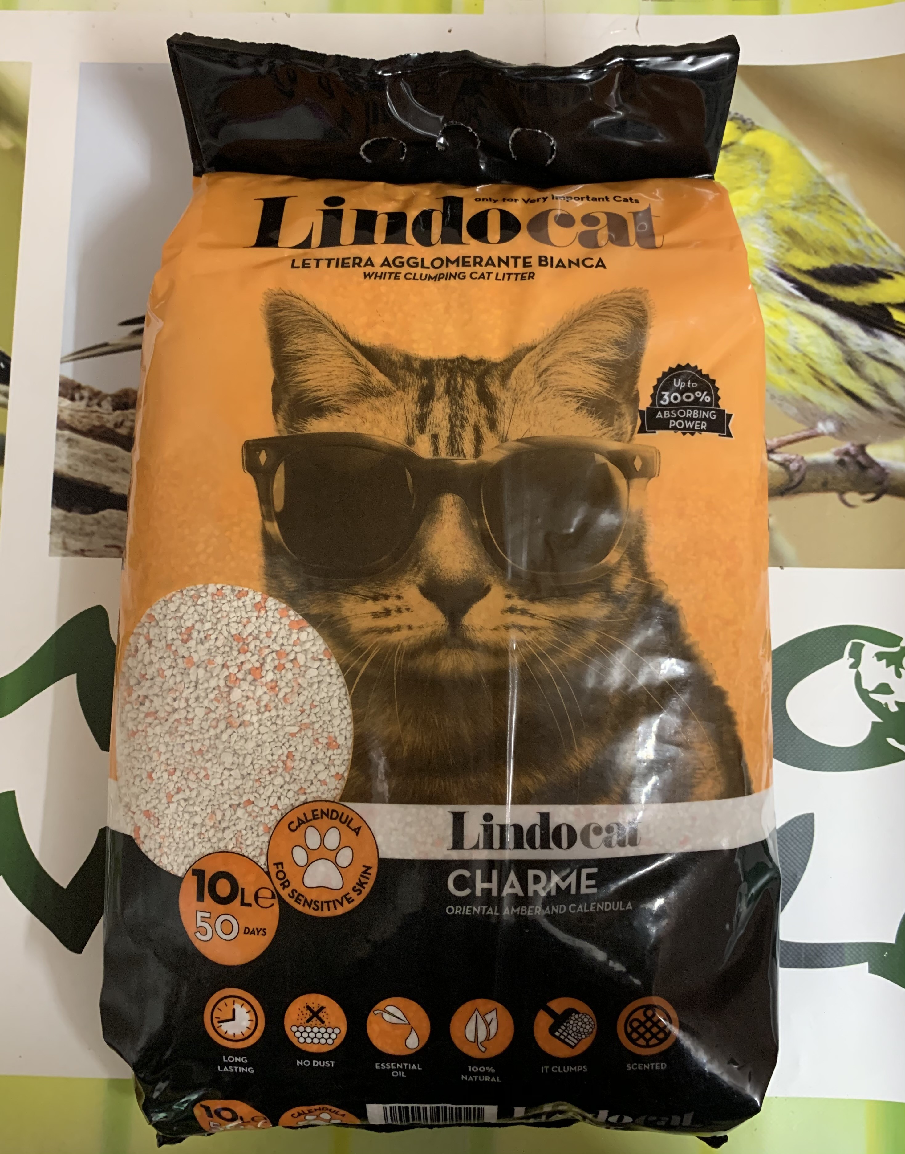 Charme e` una lettiera igienica minerale agglomerante, caratterizzata da una gradevole profumazione Ambra d’Oriente e effetti antisettici e lenitivi della Calendula. Questa e` una lettiera al top delle prestazioni a bassissimo contenuto di polvere, quindi non sporca, e con olio essenziale. Charme e` 100% naturale, composta da minerale argilloso capacita` di assorbimento, esente da trattamenti chimici. Questa lettiera ha un elevatissimo potere agglomerante e una altissima capacita` di trattenere liquidi e odori.